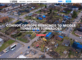 view: convoyofhope.org more: Charity Web Design Examples learn about: Charity Web Design for info & quotes: contact DreamCo Design Bold storytelling images fill the page, social media on top, call to action, and great logo combine to make this charity design shine. Add in the fun graphics and clever use of color, and you have a winner.